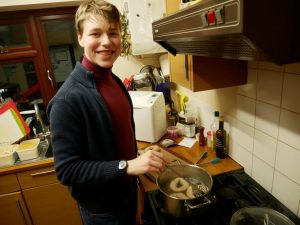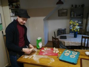 Raphael is back to home-schooling after only two weeks at the Beaconsfield School which he found really good. The school is being very supportive and trying to make lessons as near to normal as possible. Here he is baking extra-curricular bagels, which tasted great!