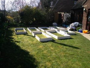 We had some old wooden doors, which someone gave us for a prop, but which we no longer need, so we were able to turn these into half a dozen boxes for raised beds.